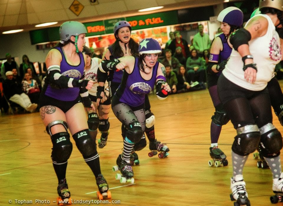 Pair O' Dice City roller girls were on TV. Ballistic Miss L. and Pandora's Squeezebox along with the other POD gals are representing today!